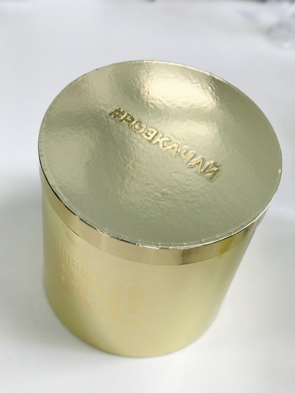 Золотые коробки с тиснением золотой фольгой для РК Украина и проекта "Співають всі!"